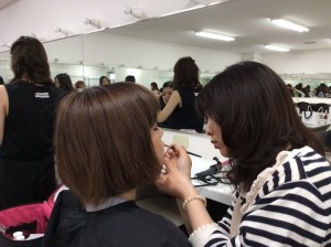 2年生は、ケサランパサランという化粧品メーカーが主催するメイクアップコンテストに向けて、授業の中で技術力を高めていきます