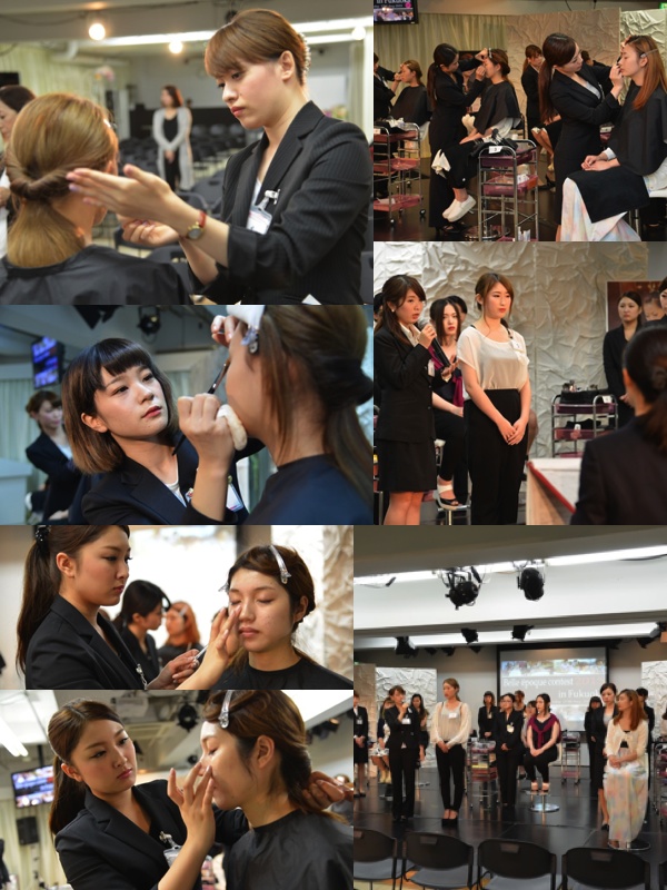 メイク競技では、40分の時間内でクレンジングからメイクアップまで。メイクの後に、ポイントをプレゼンテーションします![]()